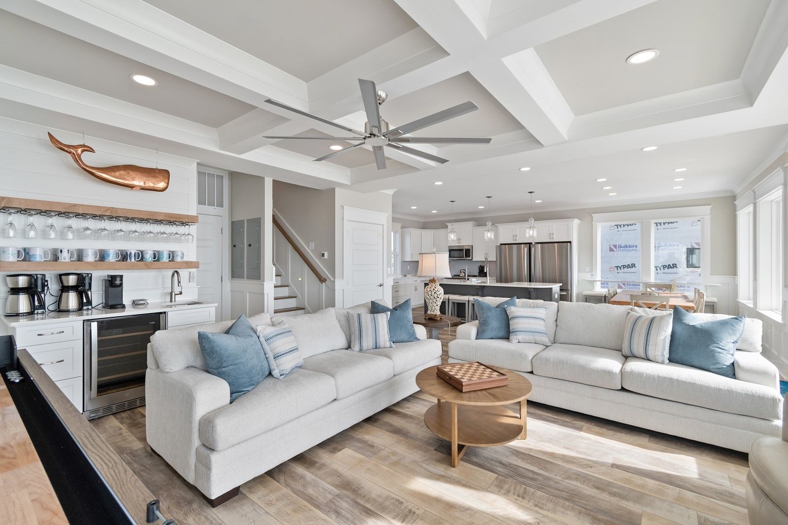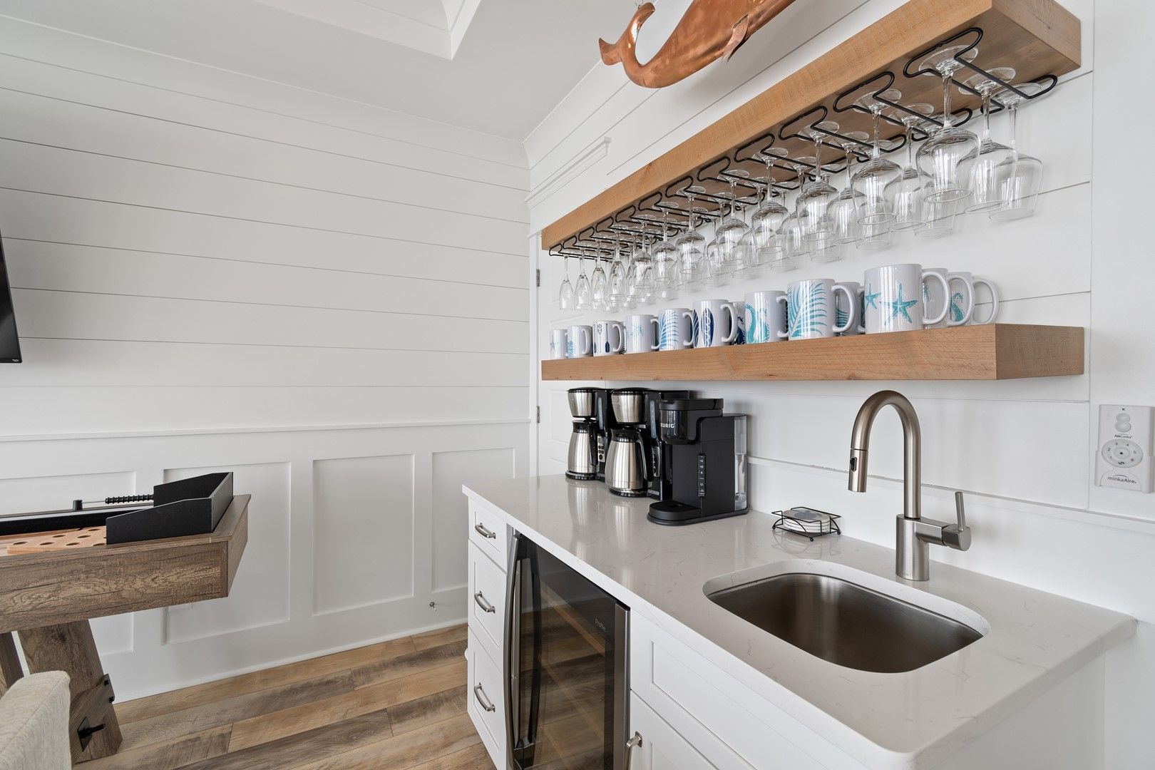 Calling all culinary enthusiasts – our fully equipped gourmet kitchen is a masterpiece. Whether a seasoned chef or a novice cook, you'll find everything necessary to whip up culinary delights. The kitchen features top-of-the-line appliances, including two dish washers, two refrigerators for fresh produce and delectable treats. We've also equipped the Morning Coffee Bar with a wine fridge, keeping your favorite beverages refreshingly cool and ready to enjoy.