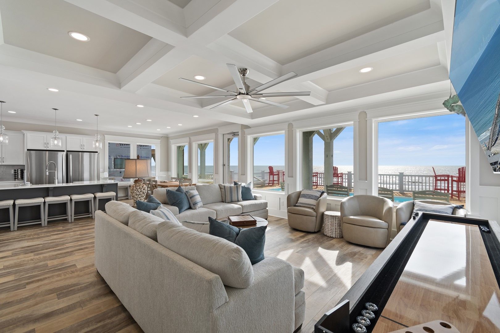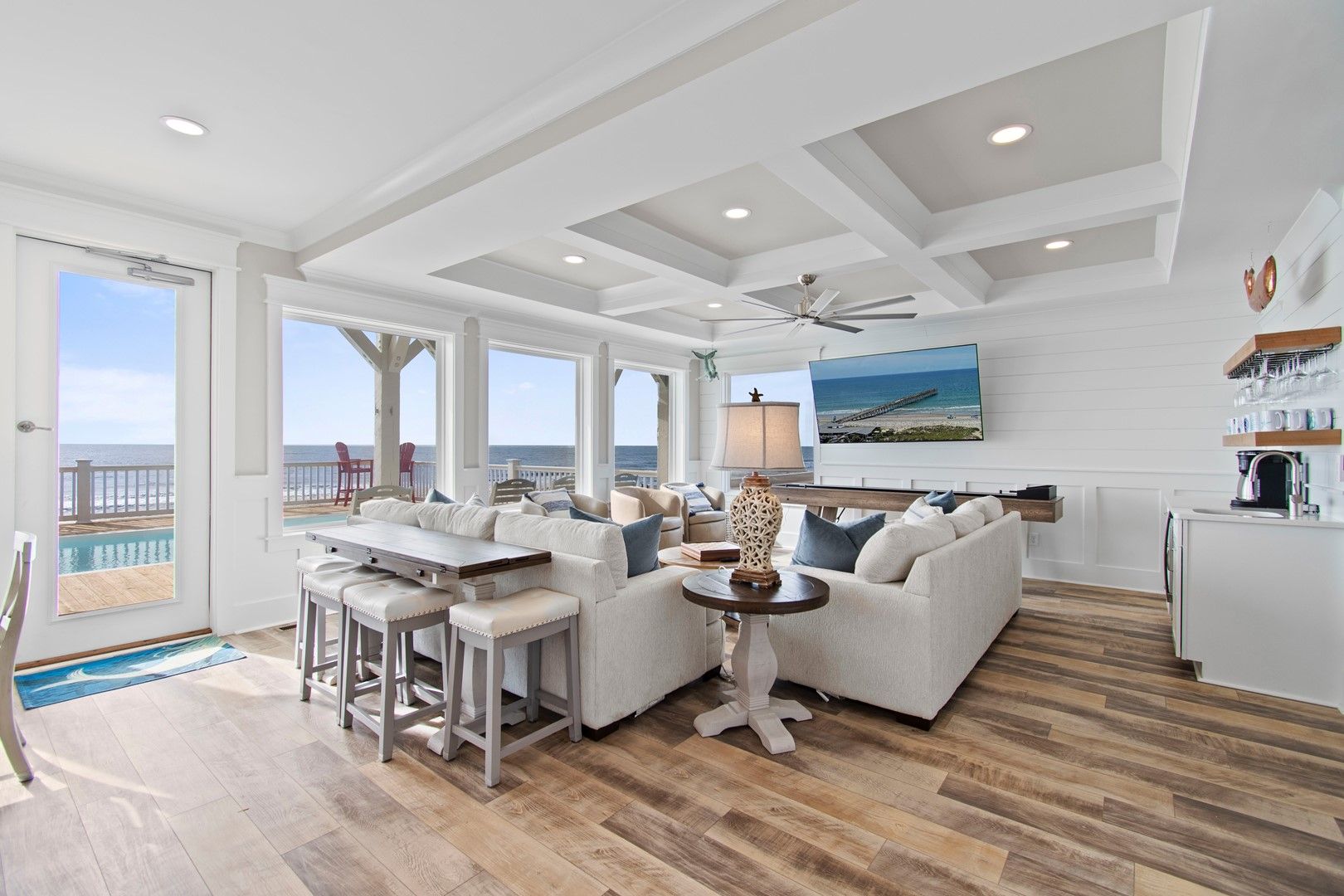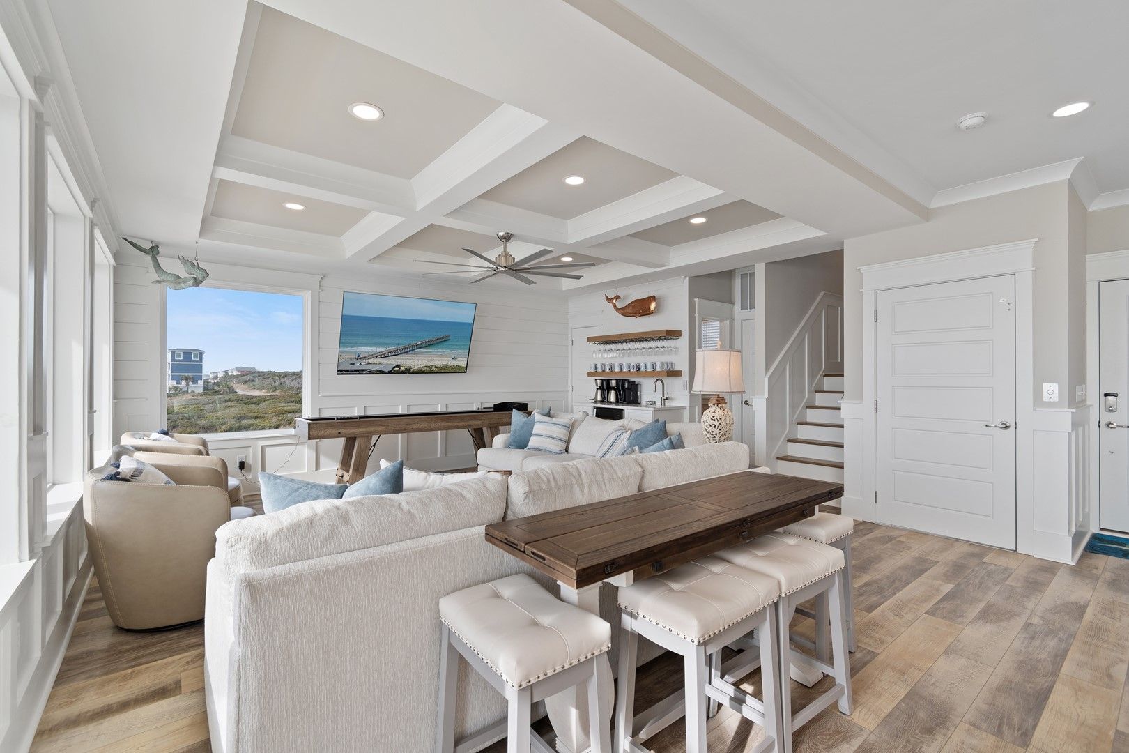 The beach house caters to all your entertainment needs with a second living area that doubles as a game room. Engage in friendly competitions, unwind with a movie night, or enjoy quality time with your loved ones.