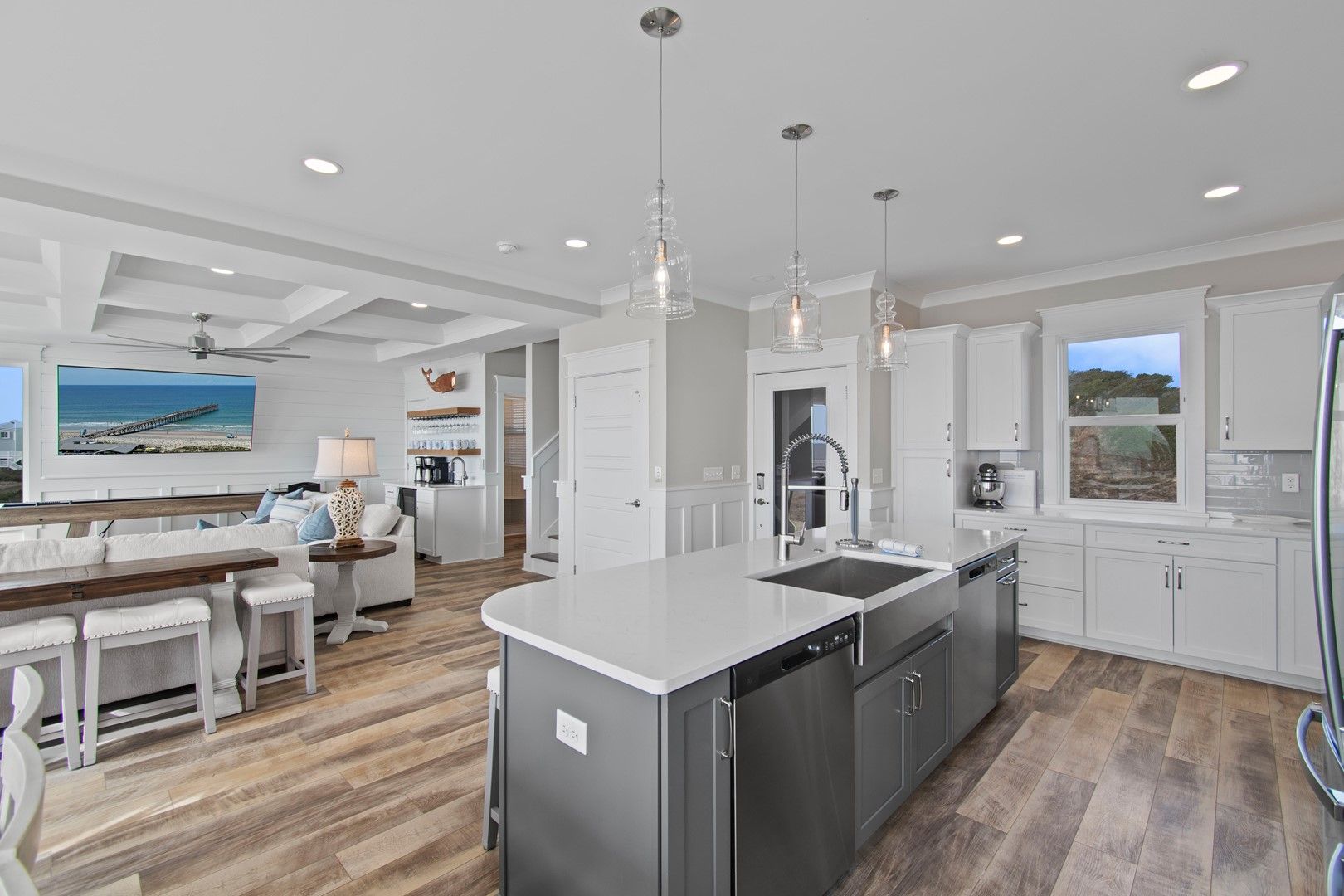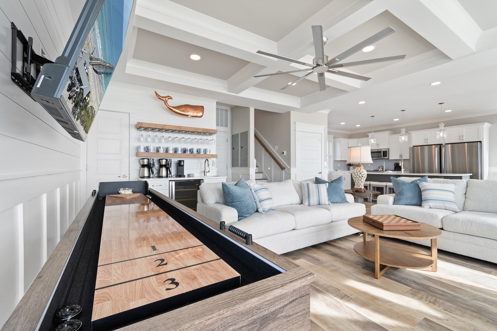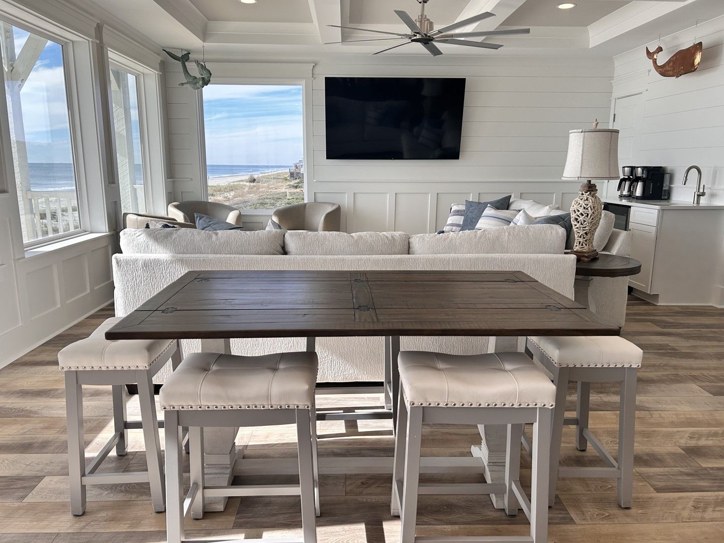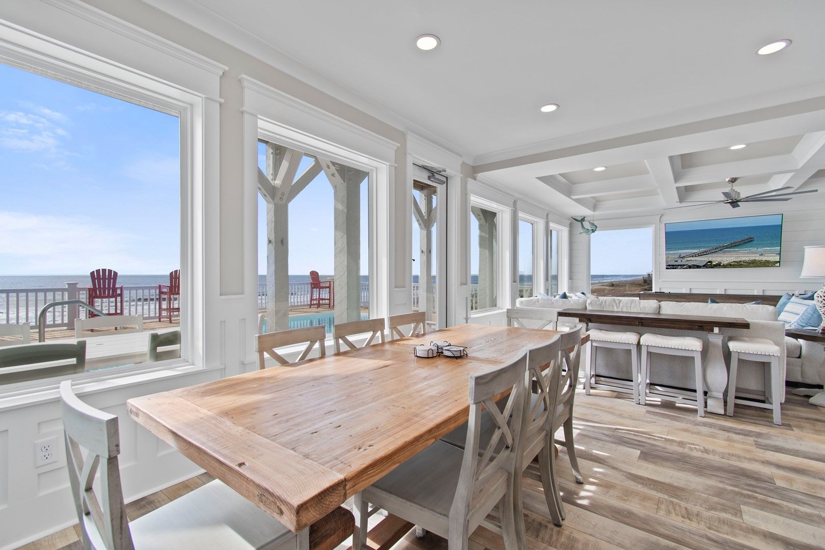 The beach house caters to all your entertainment needs with a second living area that doubles as a game room. Engage in friendly competitions, unwind with a movie night, or enjoy quality time with your loved ones.