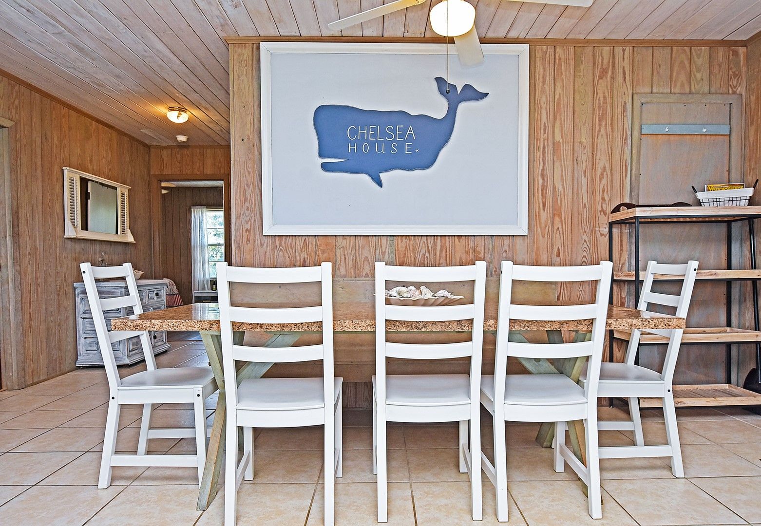 The location of this house is great, it was only steps ( I think 3 houses away)from beach access. The common areas inside are roomy, the kitchen had everything we needed to prepare meals. Upon entry, it was clean and tidy. The beds slept good and we had no issues with anything. The front screened area was a favorite place to gather and socialize. Parking is not an issue because there is plenty of room for at least 4 of 5 cars. Overall, I would rent this property again.