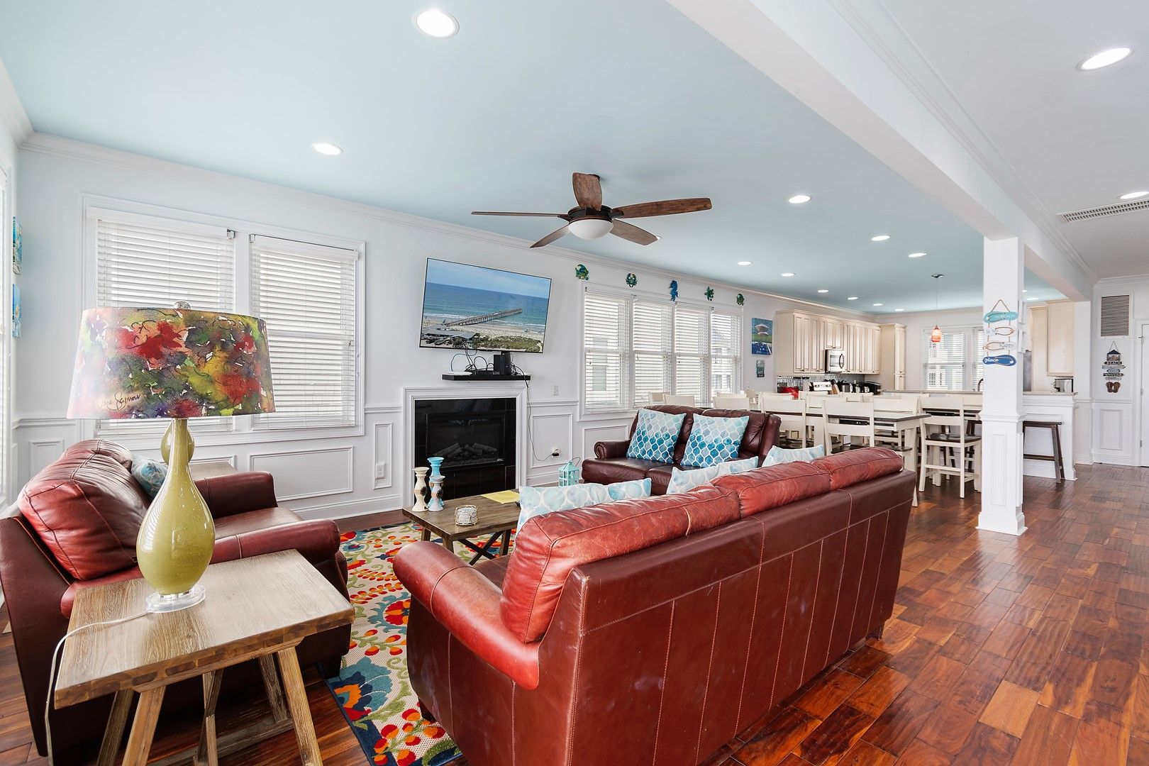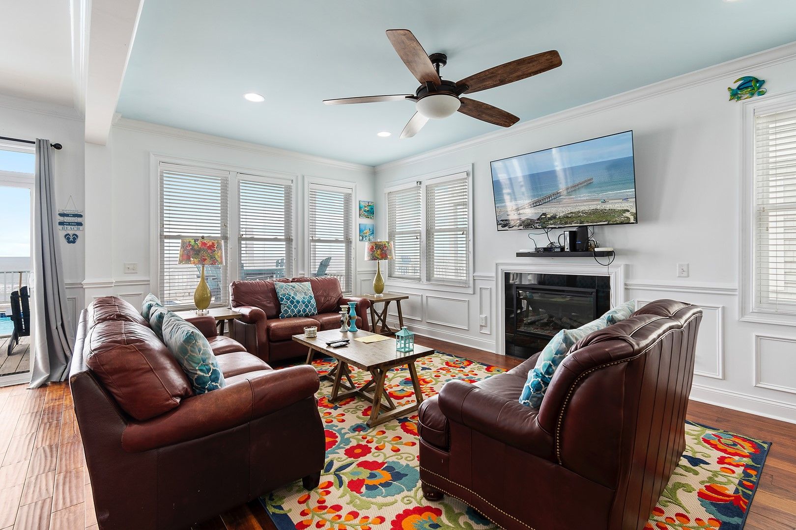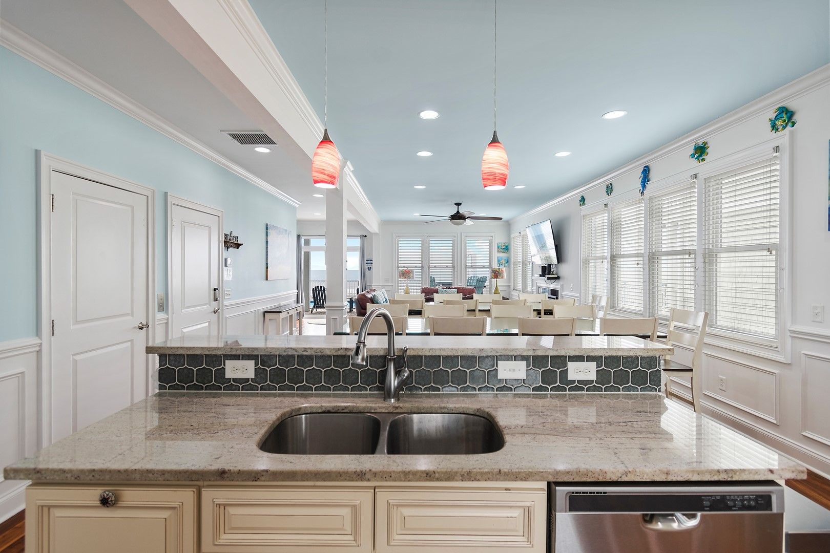 Boasting a large living room off the pool deck, as well as another family area upstairs with its wet bar, this lovely home meets all your needs.  The home also features a spacious kitchen, a large flat-screen TV in each family room, and TVs in all bedrooms. Multiple large oceanfront decks completely expand your living space so that you can enjoy the scenic views from inside and out.
