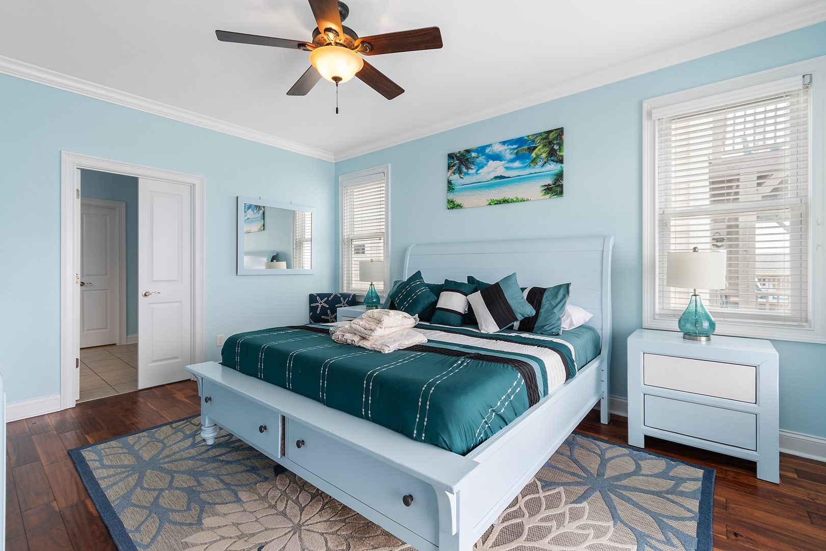 This house was perfect for our stay. So close to the beach. The bedrooms worked well with our family. The only downside was the water bugs they weren't horrible but feel like with rentals they should treat better for them. And the grill was like one you would find in a park. Very hard to cook for a lot of people. But other than that that everything was wonderful.