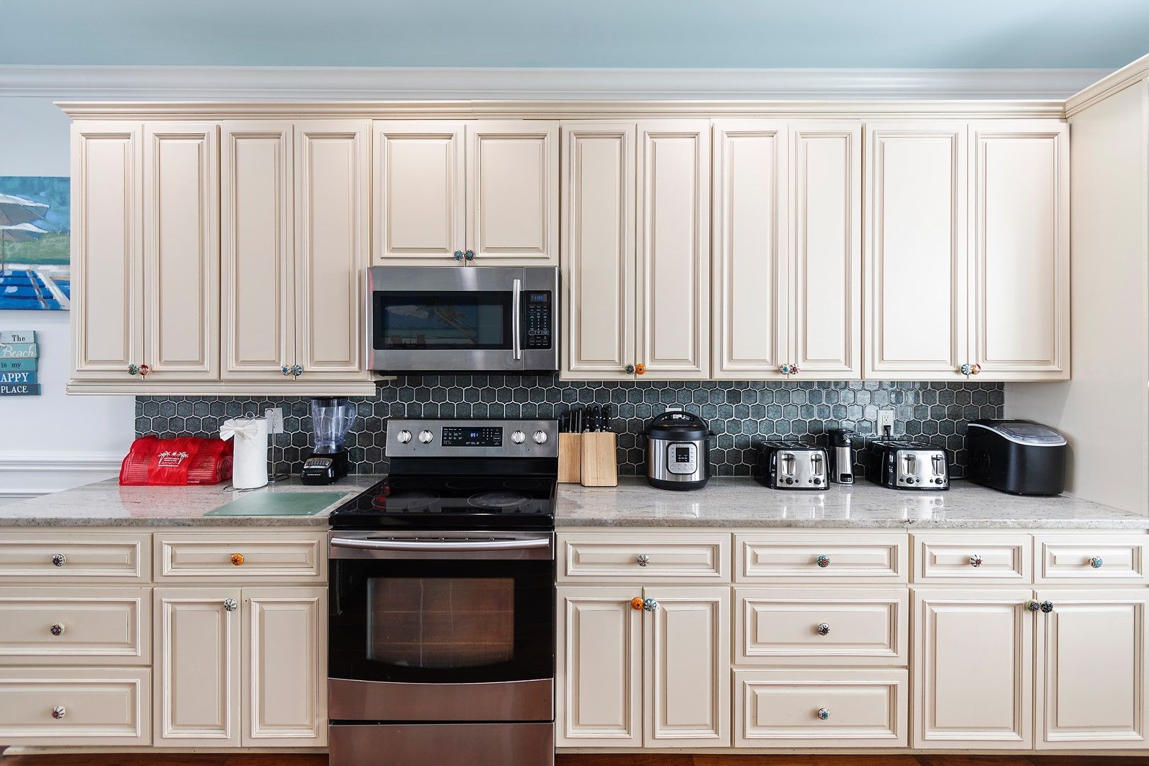 Overall the property was great. There are a few things that need to be addressed:Dryer takes about 2-3 cycles to dry one load of clothes.Dishwasher does not do a good job of washing dishes.No working ice maker.Light bulb in shower needs replacing. (Upstairs ocean side bedroom)