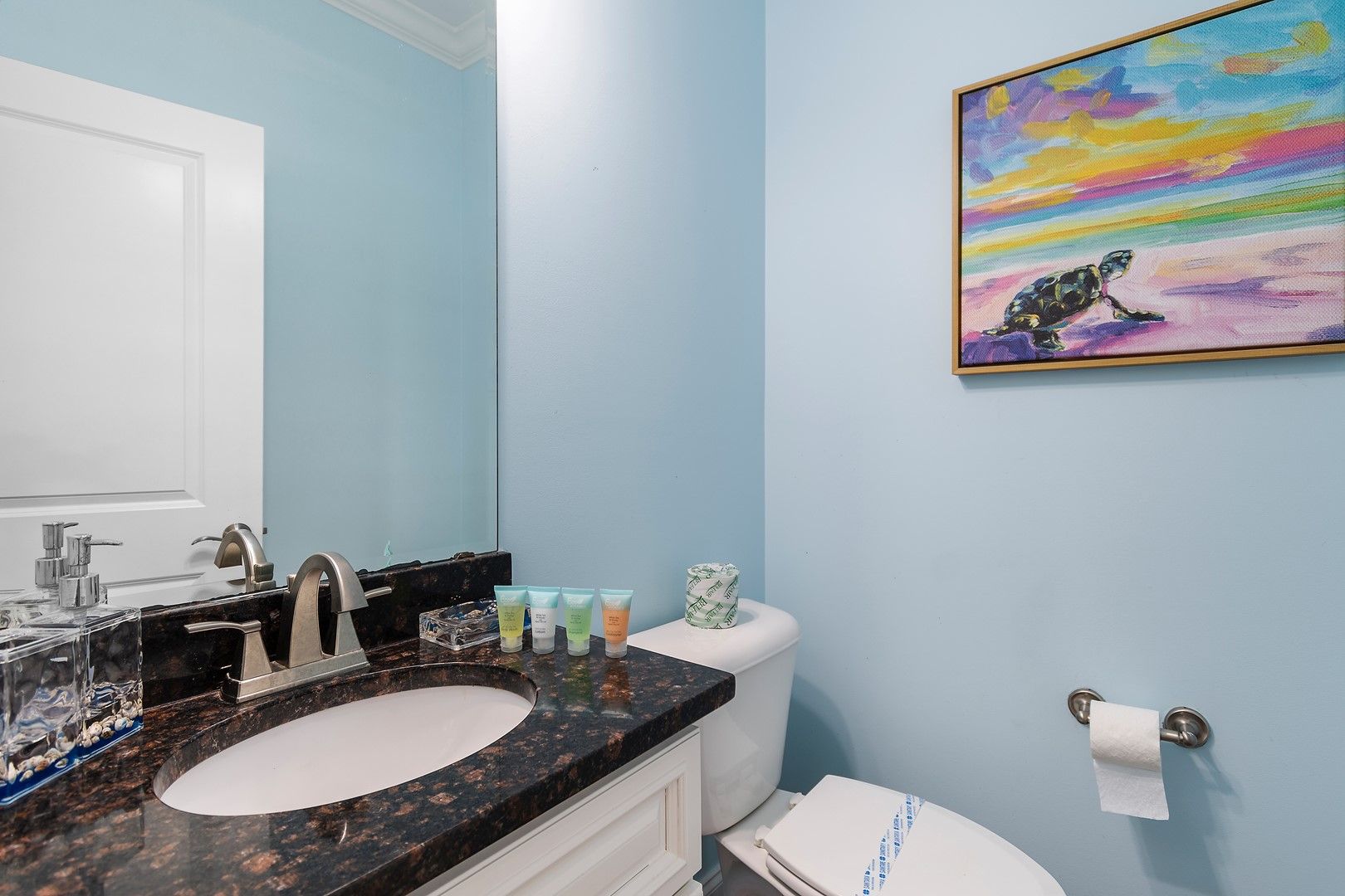 Toilet Paper, Travel Size (Soap, Shampoo, Conditioner, Lotion), & Hand Soap in all bathrooms