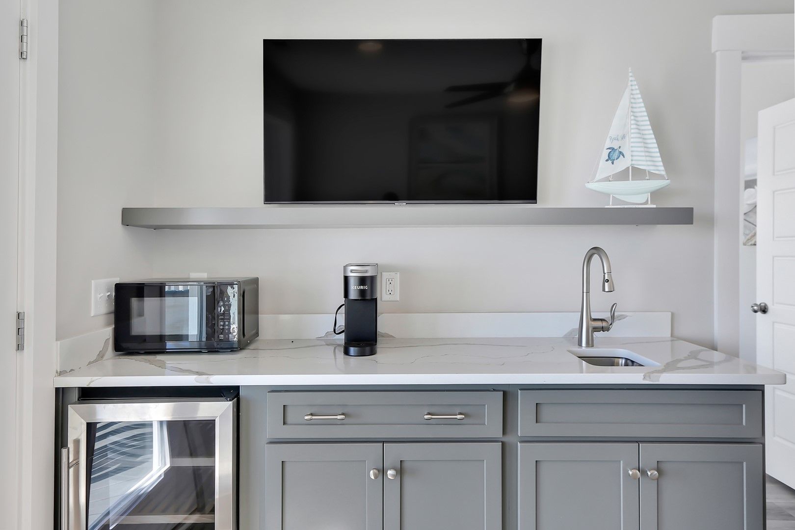 - 2nd family room with wet bar that includes microwave, mini-refrigerator and Keurig coffee maker.