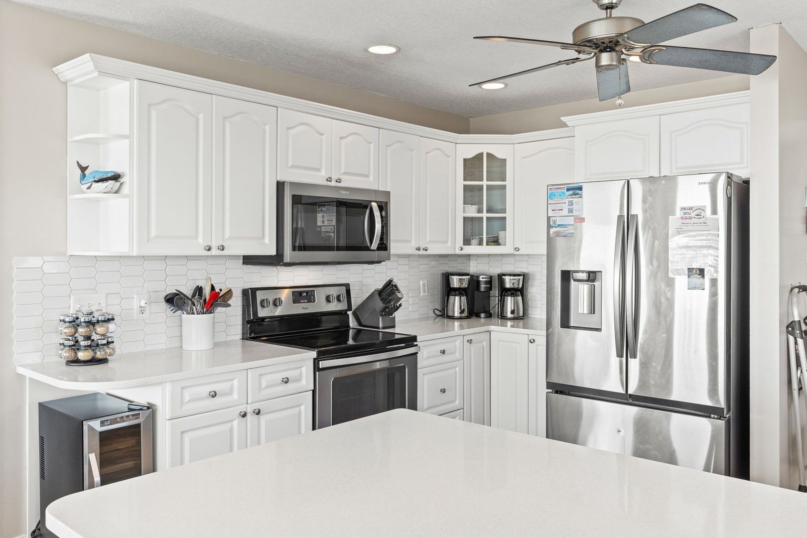 • Quartz countertops and backsplash