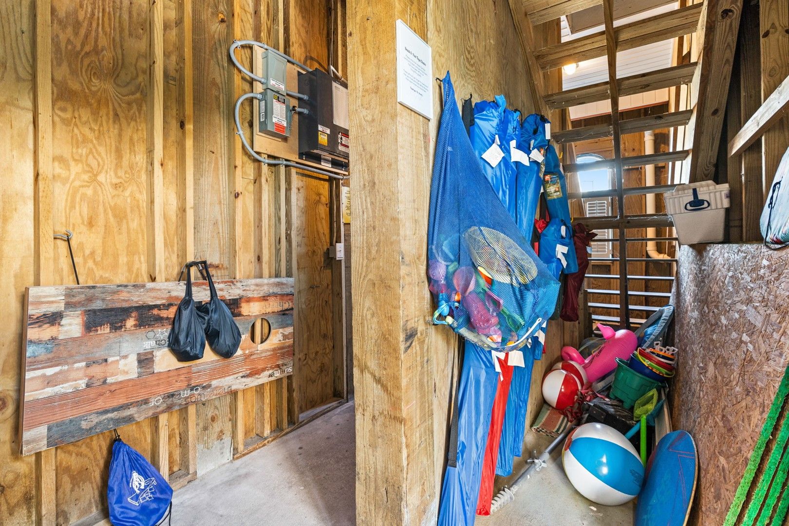 • Enclosed storage with beach chairs and pool toys