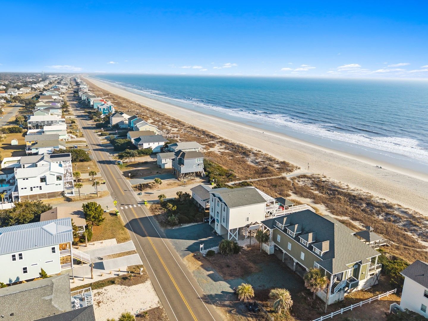 Welcome to Jewels Del Mar, a spacious updated oceanfront vacation home on Oak Island, NC. designed for large groups, family gatherings, and approved special events. This 6-bedroom, 4.5-bath home sleeps up to 17 guests and offers direct beach access, expansive outdoor amenities, and multiple gathering spaces indoors and out.