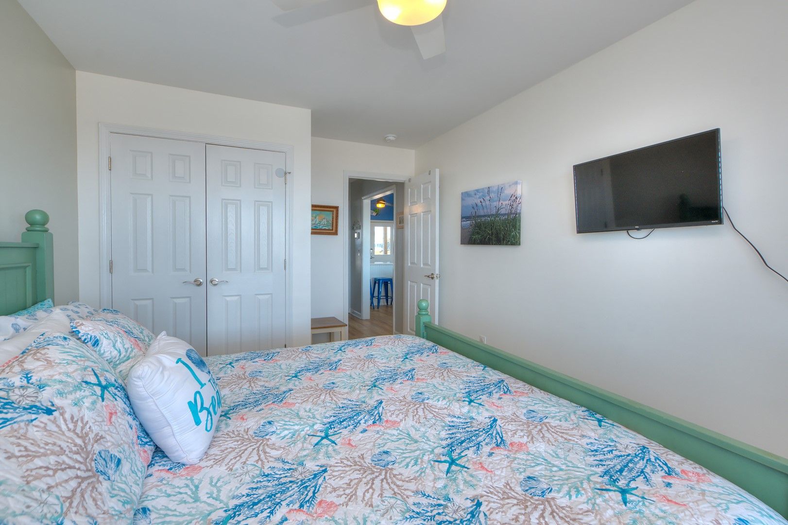 A beautiful 2nd row home with unobstructed Ocean views. This 4 bedroom home is a perfect family get away. It is located convenient to and walking distance to the commercial district, shopping, restaurants, ice cream shops, arcade, putt-putt, grocery stores, skate park, splash pad, basketball, tennis, parks, and more. Why drive when you can walk?  The oceanfront is non rebuild-able so enjoy the amazing, unobstructed views from the comfort of the large, covered deck. The house plan is one that fits most family needs with 2 ocean view facing bedrooms and two facing the pool. With an open gathering room, kitchen, and dining area, no one will be left out of any conversation. There are flat screen televisions in each bedroom as well as a large 55 " in the living area for your enjoyment. This home is perfect and will leave you wanting to stay longer each time you visit. Come, relax and enjoy everything Oak Island has to offer!!!