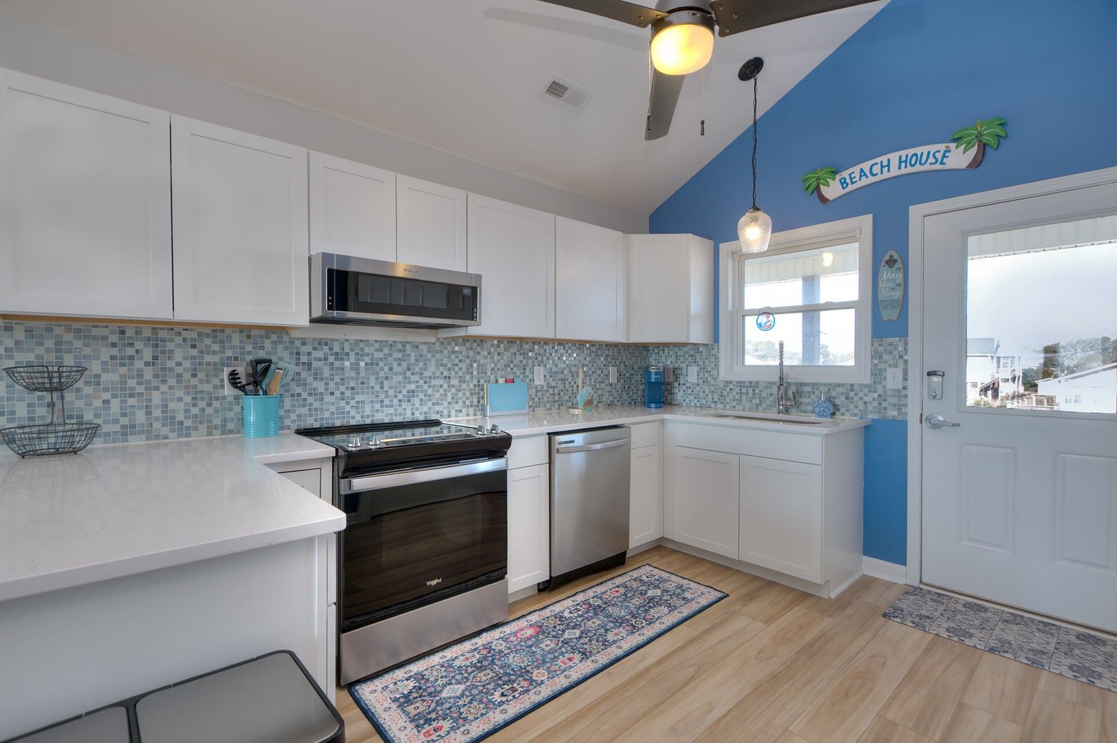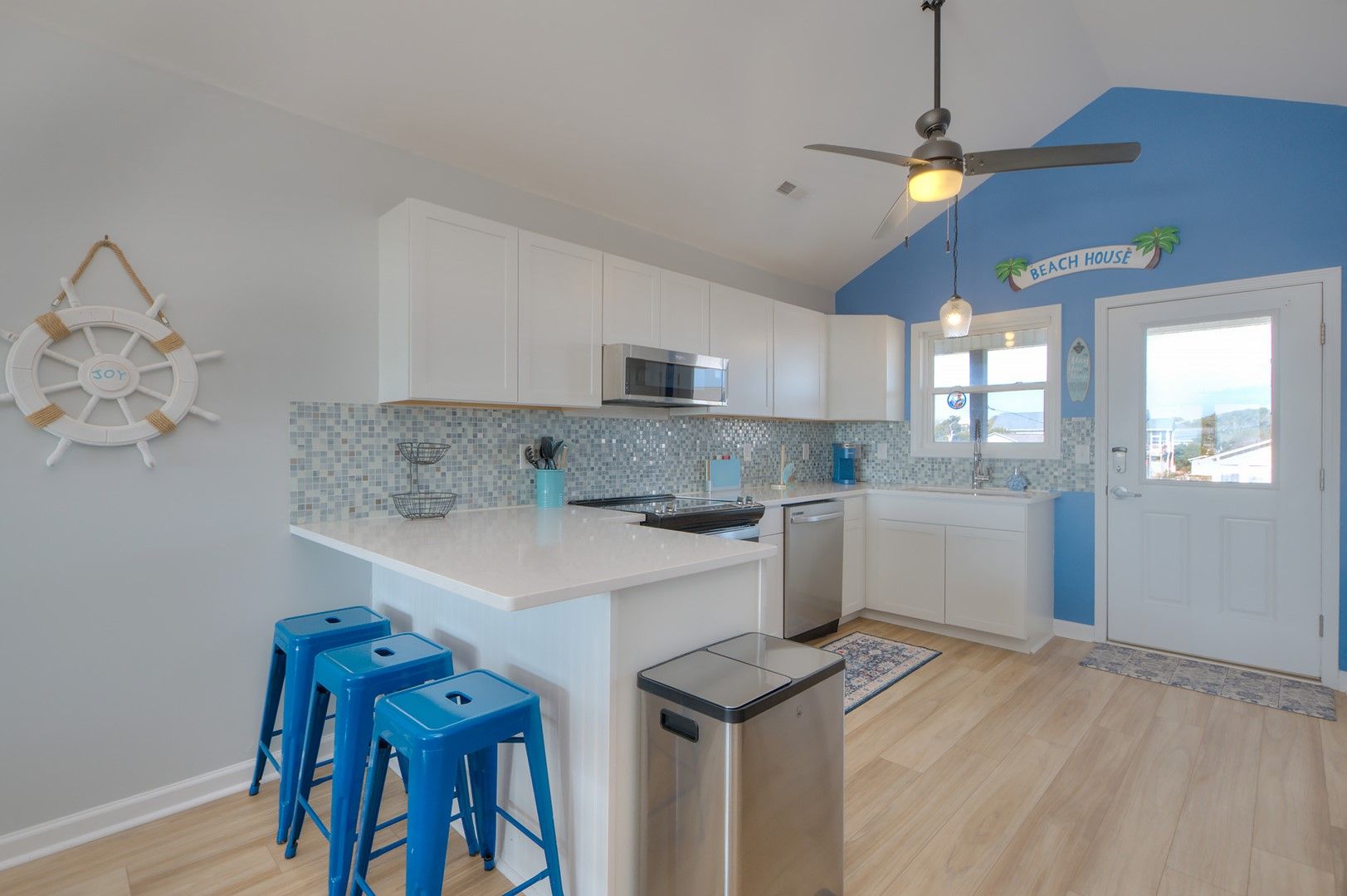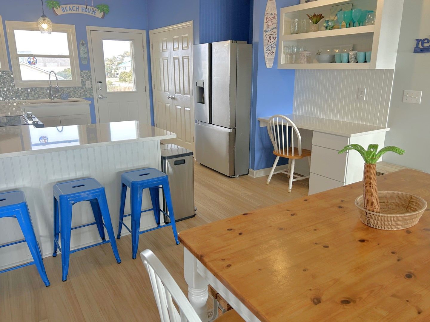 The recent remodeling was great! We have stayed at this house for several years and really appreciate all that went into the remodeling. The location is great and the pool was very useful when the weather at the beach was too rough for the young kids to play in!