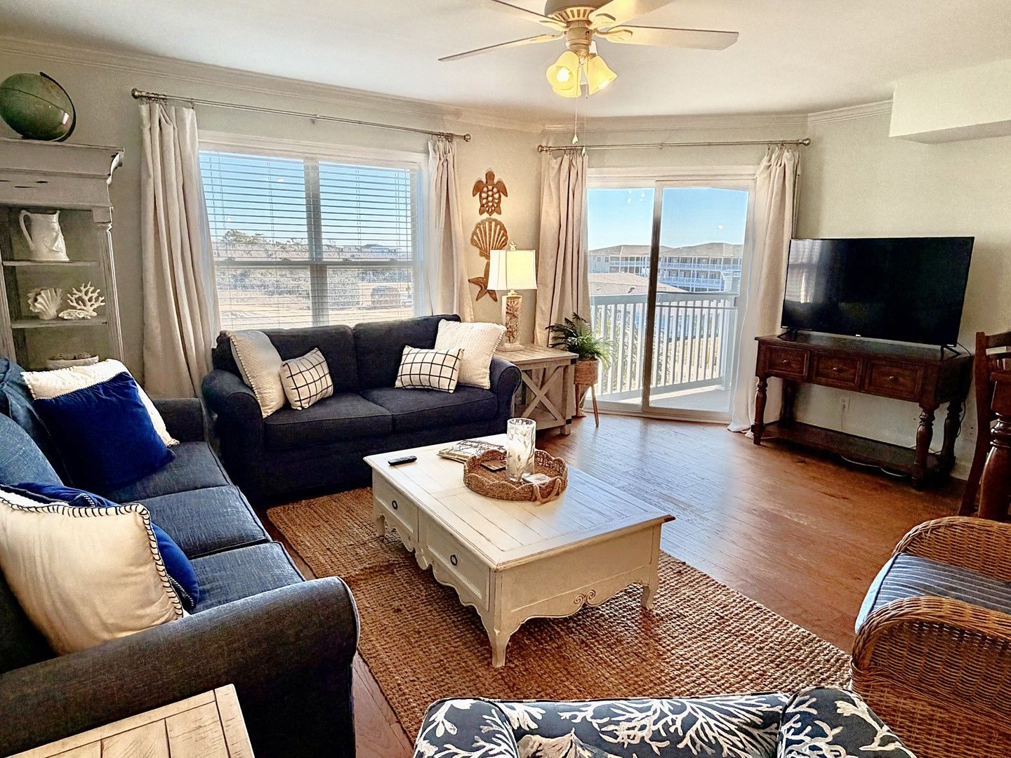 We love this condo. There is so much room! We had our family of eight and there was plenty of space. All of the rooms are decorated perfectly for the beach. There are black out curtains which were a dream! The beach is a very short walk away. We will definitely be back!