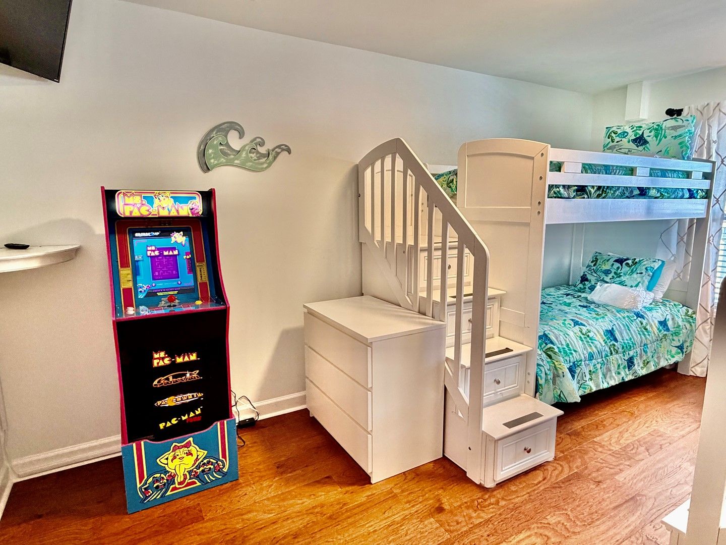 Our family really enjoyed the stay at this condo! It's beautiful inside, updated and nicely decorated. We have 2 toddlers who loved the bunk bed stairs and the provided games. We also loved the balcony and being able to see the ocean. Beach trips were just a short walk away. We went in November and it was still warm enough to enjoy the beach! The town is really cute and so much is right by the condo for shopping or eating out. We loved our stay and made fond family memories here.