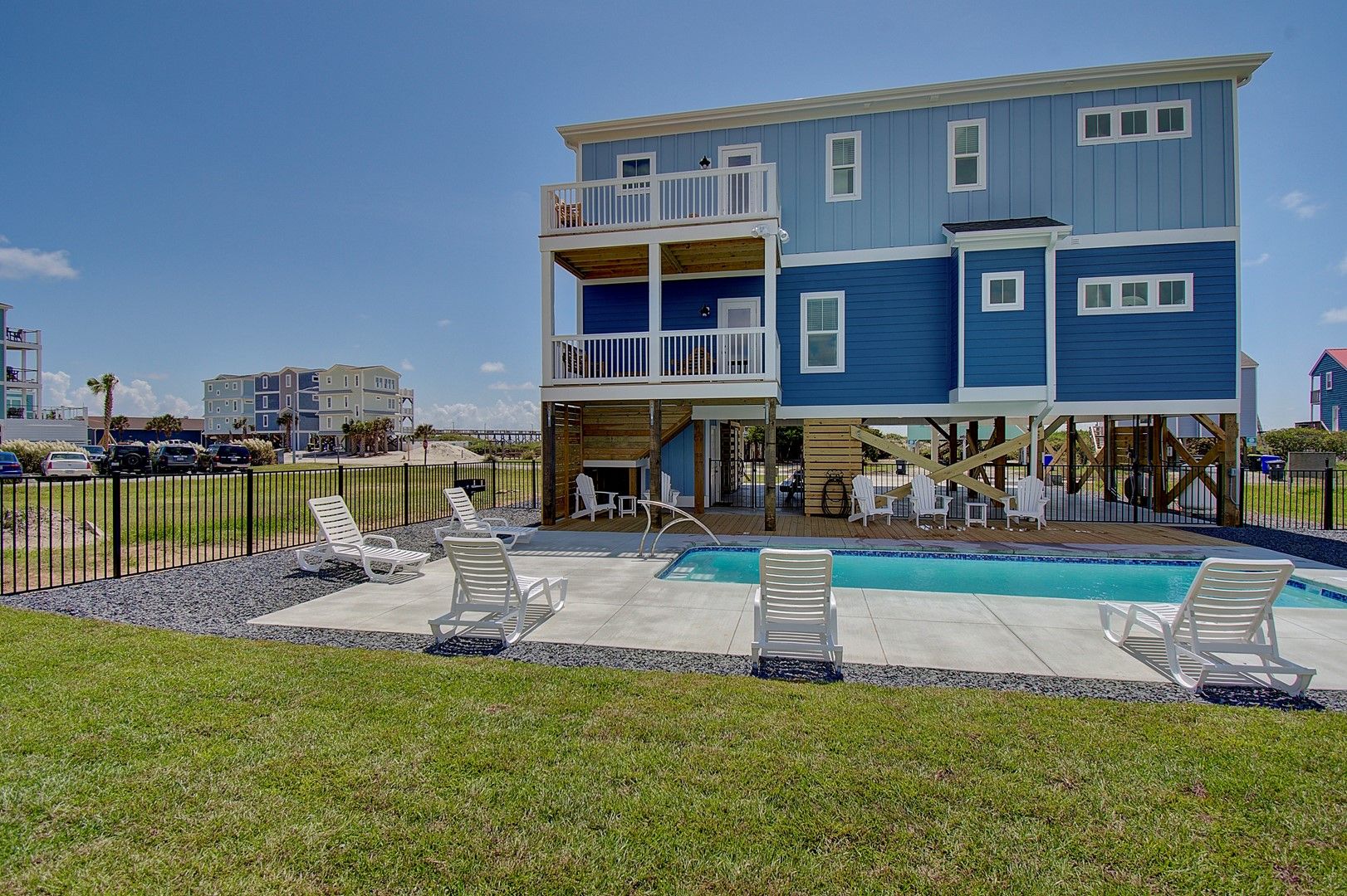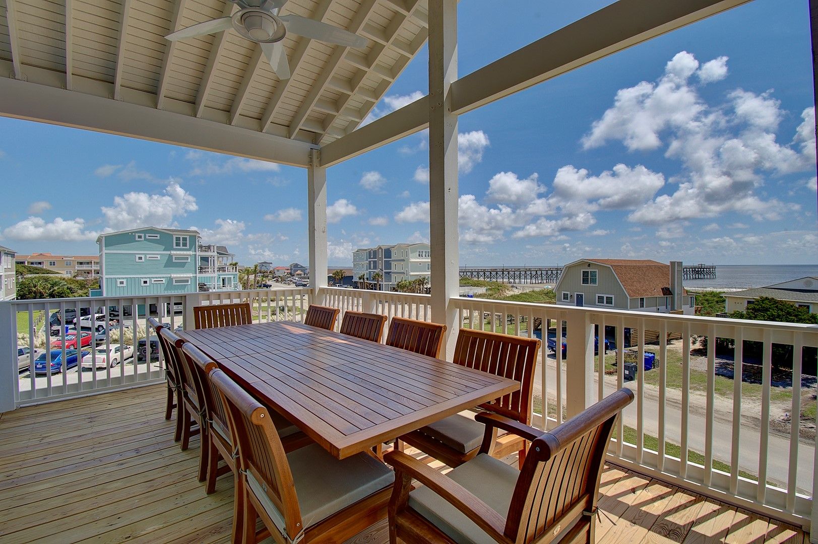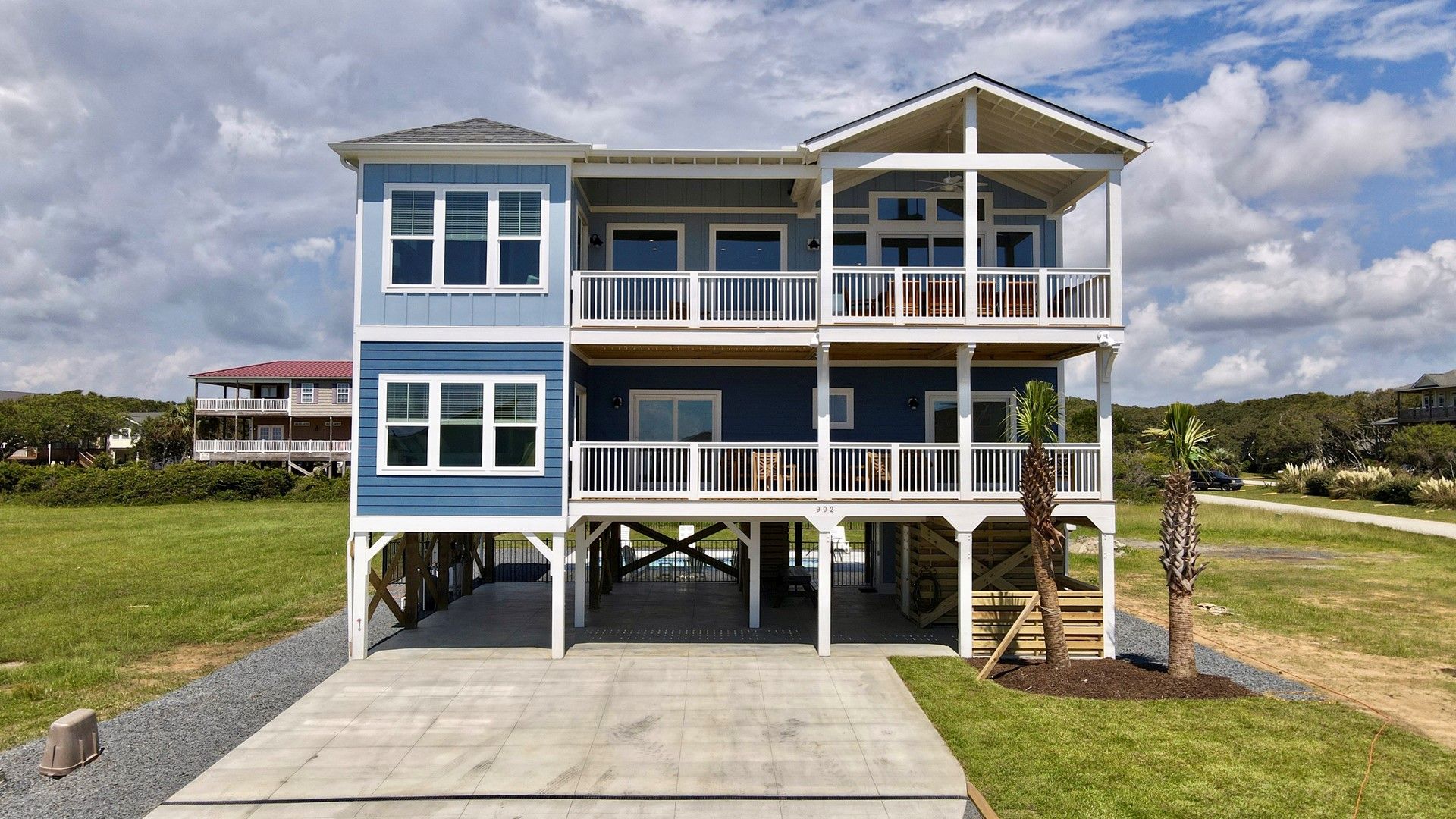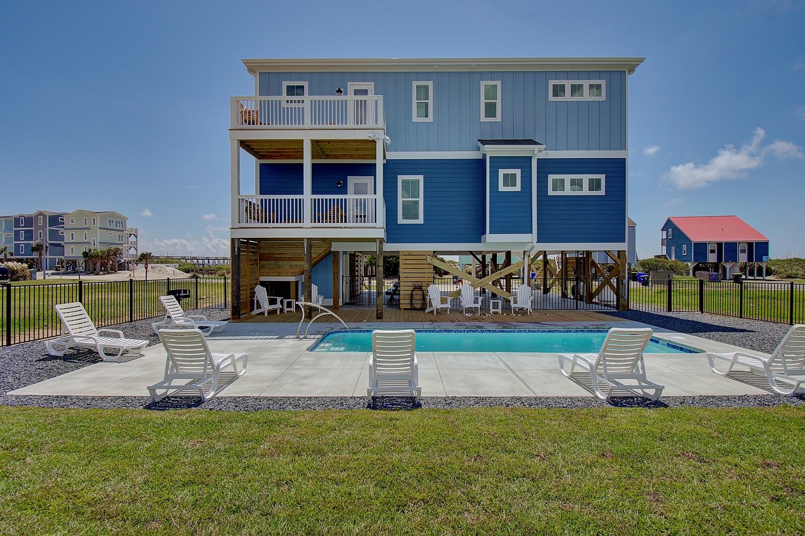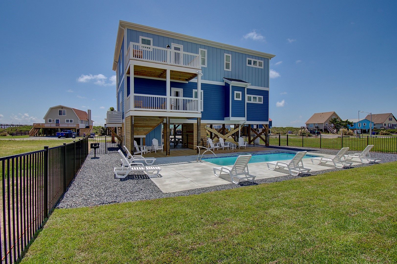 This absolutely beautiful home has spectacular ocean and island views! All bedrooms include flat screen TV’s, in addition to the great room.  You can relax your cares away on one of the two huge oceanside covered porches, and there are also two rear decks overlooking the in-ground pool.  The open concept/reverse floor plan offers an eat-in kitchen with a large island breakfast bar that seats seven, dining area with large dining table, and great room, as well as large windows to maximize the views.  You can see all the way to Bald Head Island and the ‘Old Baldy’ Lighthouse.  The home also has spectacular 270 degree views of Oak Island.  In addition to the in-ground pool, there is also an elevator.  This gorgeous home's centralized location is perfect for everything - access to the beach and pier, shopping, restaurants, and only a short drive into historic Southport.  This home offers upgraded amenities, including two dishwashers and two microwaves.  What are you waiting for?!  Get here soon so you can make "A Perfect Landing"!