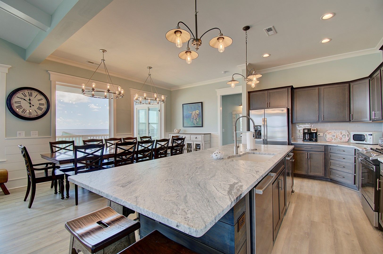 I have been renting vacation homes for well over a decade and I will say This property has The Best equipped kitchen I've ever experienced; it wanted for nothing. Having said that, Perfect Landing did not disappoint in any way. Because the house is facing south, the sunrise and sunsets were amazing. The view of the pier and ocean were perfect (no pun intended).Nine people were in our group. Everyone remarked about how well the layout worked, how comfortable the beds were, and how convenient the location was (grocery stores were within 2 miles of the house).